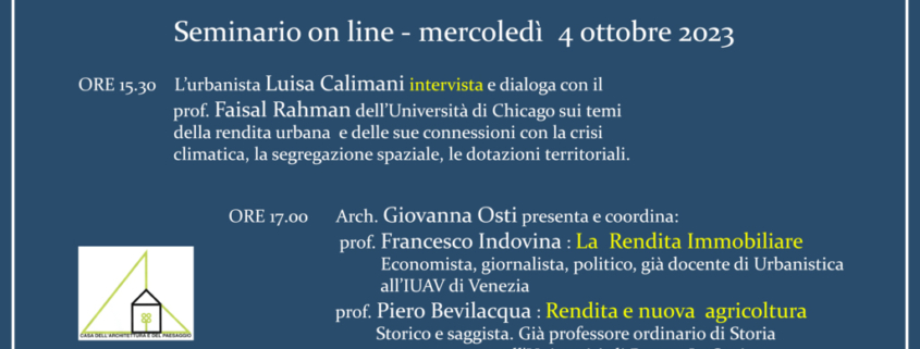 L’urbanista Luisa Calimani intervista e dialoga con il prof. Faisal Rahman dell’Università di Chicago sul tema:
