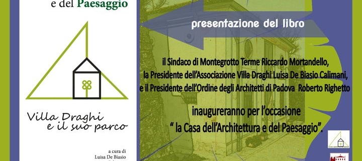 Domenica 19 giugno alle ore 17,30 a Villa Draghi di Montegrotto Terme viene presentata da Riccardo Mortandello Sindaco di Montegrotto Terme, Luisa De Biasio Calimani Presidente dell’Associazione Villa Draghi e Roberto Righetto Presidente dell’Ordine degli Architetti di Padova