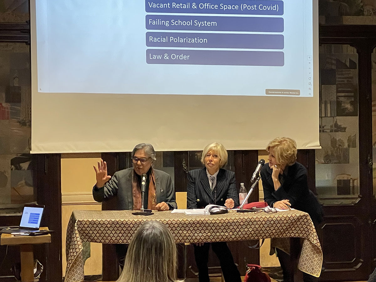 ad una conversazione sui temi che oggi attraversano in modo diverso, tutte le città del Mondo; in forma più acuta le megalopoli come Chicago e con minori contrad-dizioni quelle di piccola- media dimensione come Padova. Un confronto fra i protagonisti dell’impegno per la salvaguardia dei Beni Culturali, della Democrazia urbana, dell’Ambiente, della Salute, delle diseguaglianze, del paesaggio urbano e un illustre rappresentante di una delle metropoli più colte, di-namiche e all’avanguardia degli Stati Uniti