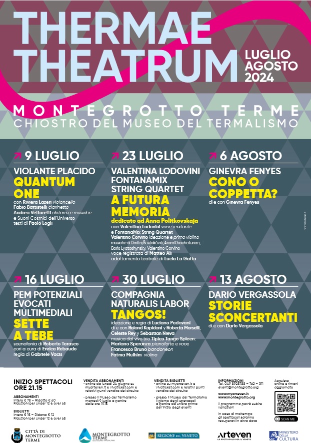Presso il Museo del Termalismo martedì 9 luglio a partire dalle ore 19:15VENDITA BIGLIETTI   On-line su myarteven.it e vivaticket.com e relativi punti vendita del circuito